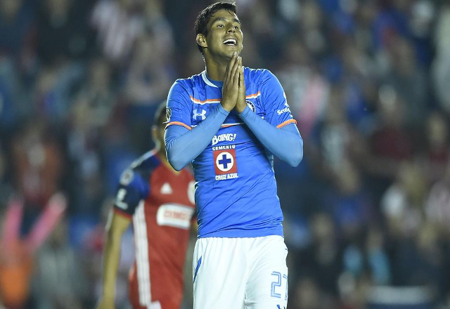 16/01/16.-El gol del delantero paraguayo Jorge Benítez poco antes del descanso le dio el sábado a Cruz Azul un empate 1-1 ante Chivas por la segunda fecha del torneo Clausura mexicano. Orbelín Pine