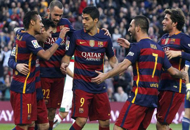 9/01/2015 - El Barcelona se situó hoy como líder provisional de la Liga española de fútbol al vencer 4-0 al Granada sin apenas despeinarse gracias a un hat-trick de Lionel Messi y un tanto más d