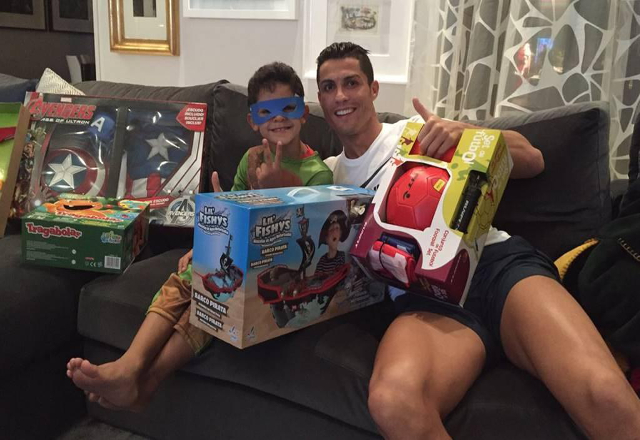 5/01/16.-El futbolista portugués Cristiano Ronaldo publicó una imagen donde aparece junto a su hijo y los regalos que le trajeron Los Reyes Magos a éste. Cristiano Jr. se mostró contento con su ba