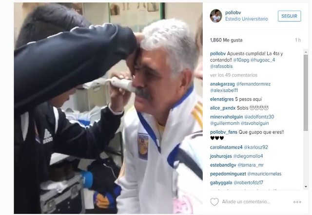 29/12/15.-El técnico de los Tigres, Ricardo Ferretti, cumplió con su apuesta de quitarse el bigote si eran campeones del futbol mexicano. Hugo Ayala, defensa central de los universitarios, fue el en