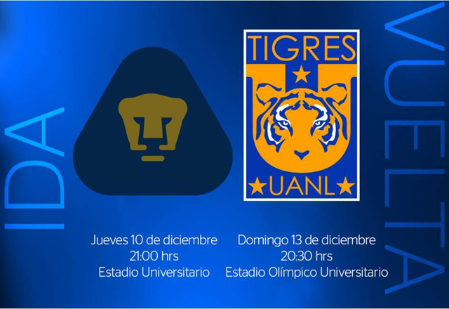 7/12/2015 - La Liga Mx dio a conocer los horarios para la Gran Final del futbol mexicano, luego de que Pumas y Tigres superaran al América y al Toluca, respectivamente. Ambos conjuntos felinos arran