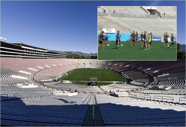 9/10/15.- Bajo una temperatura de cerca de 35 grados, la Selección Mexicana entrenó en la cancha del Rose Bowl. El ambiente del equipo que maneja Ricardo Ferretti es excelente de cara al duelo contr