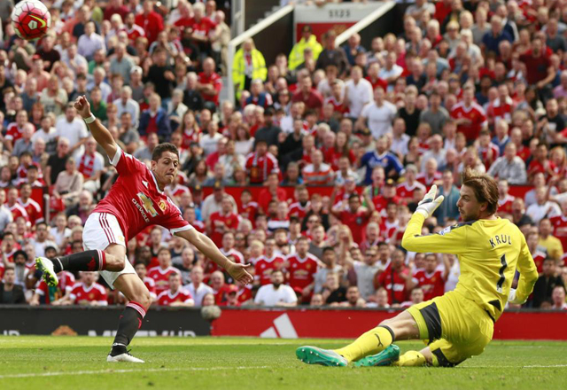 18/08/15.-Javier Hernández reapareció con el Manchester United al jugar 18 minutos contra el Brujas de Bélgica en los playoffs de la Champions League. Con esto, Chicharito participa por sexta edici