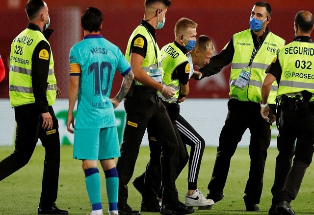 Durante el partido entre el Mallorca y Barcelona de la jornada 28 de LaLiga española, el cual es a puerta cerrada, se vivió un momento inesperado, luego de que un espontáneo saltara a la cancha par