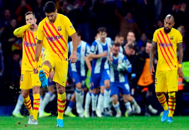 El Barcelona solo consiguió empatar (2-2) en el campo del último clasificado de la liga, el Espanyol, pero pudo mantener el liderato, aunque igualado a puntos con el Real Madrid, que ganó por 3-0 e