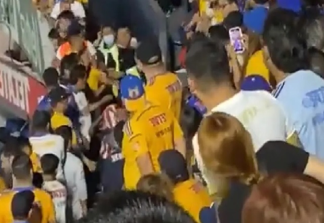 Captan a aficionados de Tigres agrediendo a seguidores de Chivas en el Estadio Universitario durante el partido de la jornada 9 de la Liga MX entre felinos y tapatíos. A través de redes sociales cir