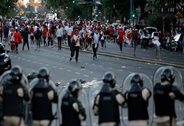 24/18/8.- Al menos 29 personas fueron detenidas este sábado por los incidentes que se registran en los alrededores del estadio Monumental, que llevaron a aplazar al domingo el decisivo partido de l