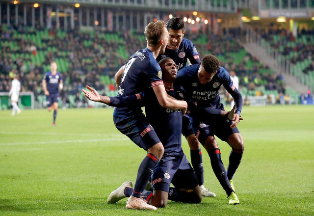 20/10/18.- Los dobletes del uruguayo Gastón Pereiro y Luuk De Jong prolongaron la racha triunfal del PSV Eindhoven en la Liga de Holanda (6-0), que lidera con nueve victorias en otros tantos partid