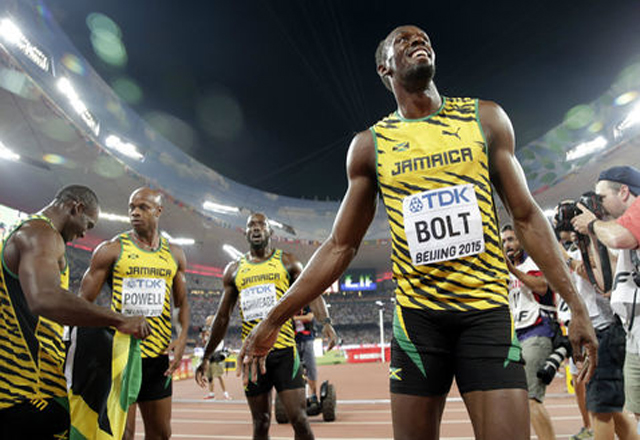 29/08/2015 - PEKÍN, China.- Usain Bolt completó un nuevo triplete en las pruebas de velocidad del Mundial de Atletismo de Pekín, tras la victoria de Jamaica en el relevo 4x100 metros, con un tiem