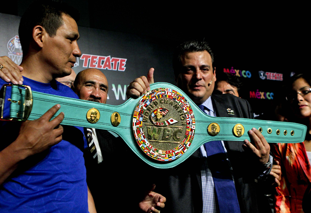 MÉXICO, D.F.-(EL UNIVERSAL)22/04/15.- La pieza más codiciada del 2 de mayo fue develada. Se trata del cinturón esmeralda del Consejo Mundial de Boxeo (CMB) que fue confeccionado específicamente pa