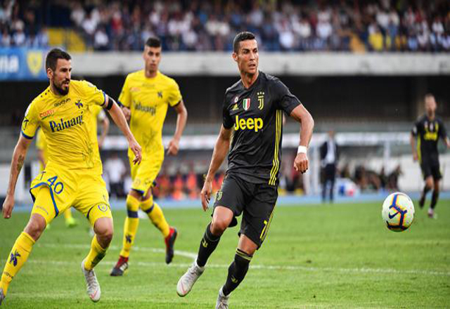 18/08/18.- La Juventus logró hoy un agónico triunfo por 3-2 sobre el Chievo Verona en el partido de la primera fecha de la Liga italiana de futbol que marcó el debut de Cristiano Ronaldo con la cam