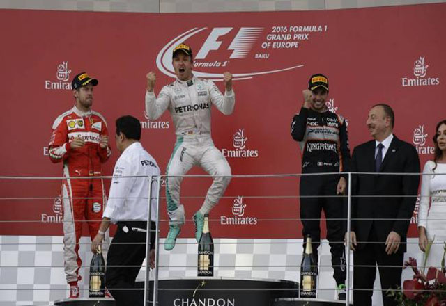 19/06/2016.- La combatividad del piloto mexicano Sergio Pérez fue recompensada en el Circuito de Bakú, al conseguir el séptimo podio de su carrera y segundo de esta temporada, después de alcanzar