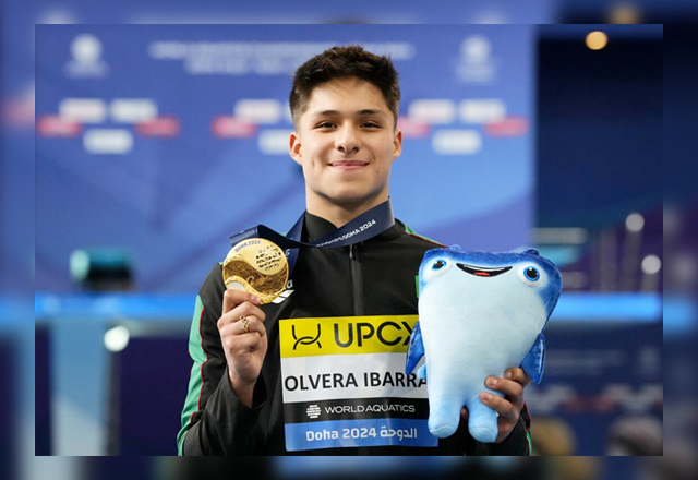 El Himno Nacional de México se escuchó en el Campeonato Mundial de Natación que se realiza en Doha y fue gracias al clavadista Osmar Olvera luego de ganar la medalla de oro en la prueba de trampol