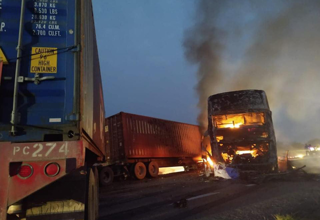 Cd. Victoria, Tamaulipas.- Cuatro personas murieron calcinadas y al menos 14 más resultaron lesionadas, durante un choque con incendio entre un trailer, un autobús y una camioneta, cerca de San Fern