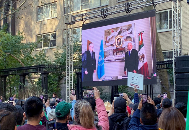 Ante algunos simpatizantes en Nueva York, el presidente Andrés Manuel López Obrador se comprometió a hablar con su homólogo estadunidense Joe Biden para que cumpla con su compromiso de regularizar