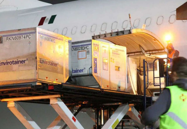 En punto de las 00:47 horas de este lunes, llegó a la terminal 1 del Aeropuerto Internacional de la Ciudad de México (AICM) ‘Benito Juárez’ un embarque con un millón 090 mil 900 vacunas de Ast