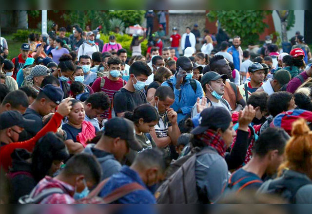 Con una cruz de madera y una manta con la leyenda "migrantes paz y justicia", la caravana migrante salió de Tapachula, Chiapas, hacia la frontera entre México y Estados Unidos; sin embargo, prevé h
