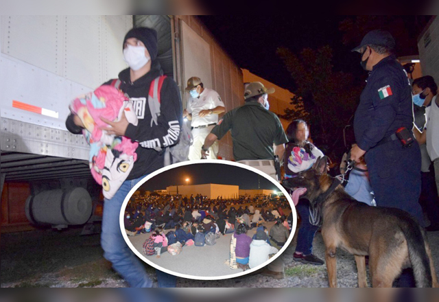 Rescatan fuerzas federales y estatales a 652 migrantes, que viajaban en seis contenedores de tres trailers, entre ellos 355 menores de edad, muchos de ellos solos. Hay cuatro detenidos. El hallazgo fu