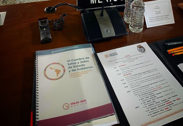 El presidente Andrés Manuel López Obrador inaugura la sexta cumbre de Comunidad de Estados Latinoamericanos y Caribeños (Celac) en el salón de Tesorería de Palacio Nacional. En el evento estarán