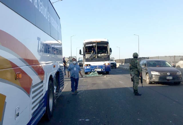 *Monterrey, NL*. Tres autobuses del Programa de Vacunación Transfronteriza sufrieron un accidente este viernes, dejando como saldo preliminar tres personas lesionadas. El convoy, con destino a Laredo