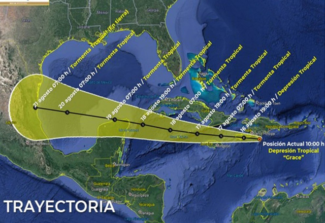 La Dirección de Protección Civil informó que en próximos días la depresión tropical Grace estará aterrizando en las costas del Golfo de México, dirigiéndose a Tamaulipas; Prevén que para el