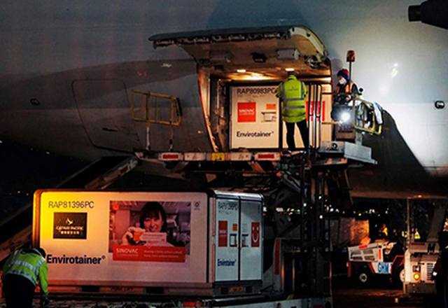 El gobierno federal recibió hoy un lote con 2 millones de dosis de la vacuna contra el coronavirus, Sinovac, en el Aeropuerto Internacional de la Ciudad de México, como parte de las entregas semanal