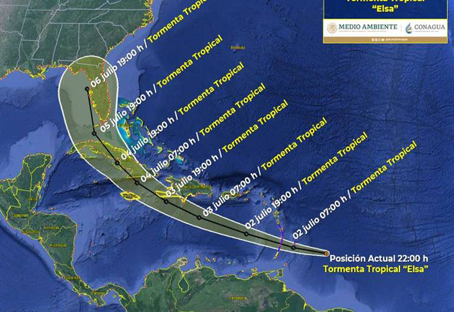 El Servicio Meteorológico Nacional (SMN) dio a conocer de acuerdo con los modelos de pronóstico, la posible trayectoria de la tormenta tropical Elsa que se desplaza en las cercanías del mar Caribe