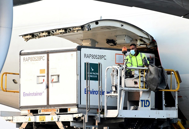 Un lote con un millón de dosis de la vacuna contra el coronavirus, de la farmacéutica china SinoVac, llegó hoy al Aeropuerto Internacional de la Ciudad de México (AICM), como parte de la estrategi