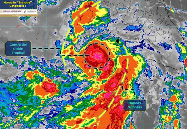La tormenta tropical "Enrique" ganó fuerza frente a la costa de México en el Pacífico y este sábado se convirtió en el primer huracán de la temporada en el Pacífico oriental. Los meteorólogos