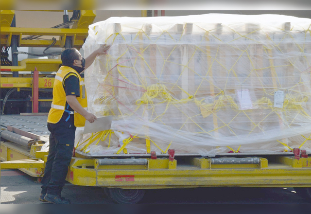 Un nuevo lote con 290 mil 160 dosis de la vacuna contra el coronavirus, desarrollada por la farmacéutica Pfizer/BioNTech llegó al Aeropuerto Internacional de la Ciudad de México (AICM), como parte
