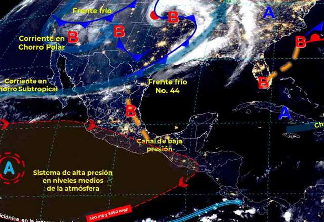 El Servicio Meteorológico Nacional (SMN), informó que el Frente Frío número 44 que ingresará este martes sobre el noroeste de México, se asociará con una vaguada polar en el suroeste de Estados