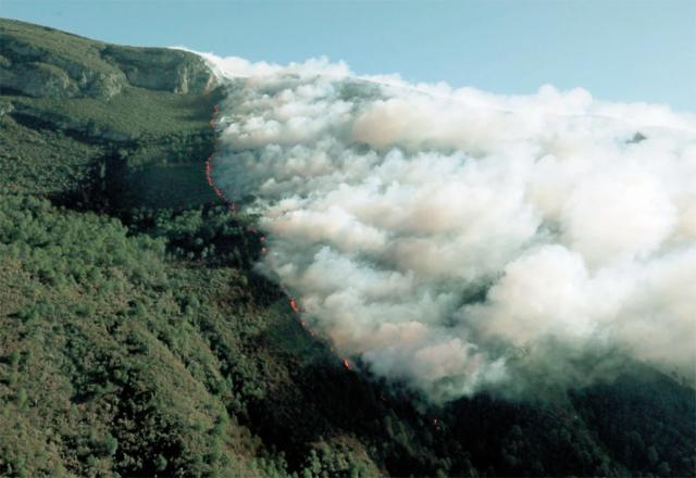 Coahuila y Nuevo León combaten un incendio forestal que, hasta las 21:00 horas de ayer, estaba fuera de control y había consumido más de 4 mil 900 hectáreas en la zona serrana que abarca a ambas e
