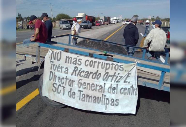 Campesinos de Villa Cuauhtémoc, en el municipio de Altamira, mantienen el bloqueo carretero que instalaron la mañana del día lunes, en demanda del pago de la indemnización por la afectación de su