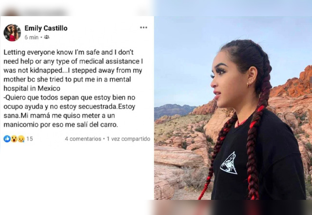 Tras el reporte de la desaparición en una comunidad rural de Hermosillo de la joven Emily Castillo, Top Model, Miss Mundo Teen 2017, se publicó un mensaje en su cuenta de Facebook, en el que dice qu