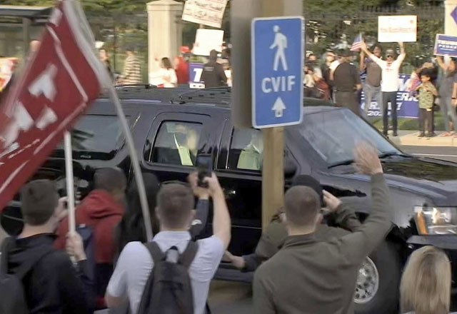 WASHINGTON..- Infectado de coronavirus y contagioso, el presidente Donald Trump se aventuró brevemente fuera del hospital en una caravana el domingo para saludar a los partidarios que lo vitoreaban,