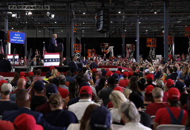 El presidente estadunidense, Donald Trump, realizó ayer un mitin en un lugar totalmente cubierto de Nevada, despertando la indignación de las autoridades del estado que advirtieron que la reunión v