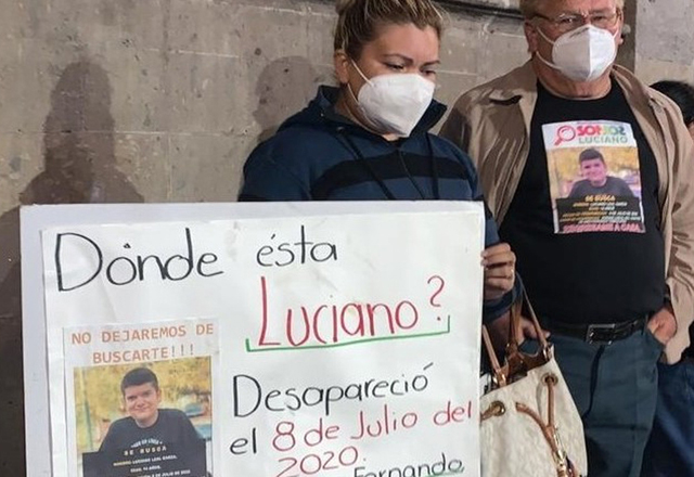 Familiares y amigos de Luciano Leal Garza, de 14 años y presuntamente secuestrado el 8 de julio en San Fernando, Tamaulipas, duermen a un costado de la puerta de Correo Mayor de Palacio Nacional con