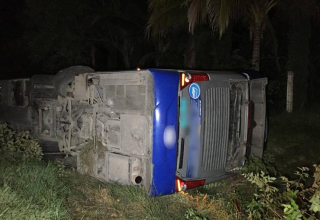 Gómez, Farías, Tamaulipas. – Una presunta dormitada por parte del chofer de un autobús de la línea Transpais, provocó que perdiera el control al volante y volcara dejando como saldo al menos 10