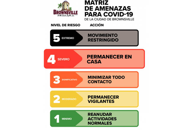 La ciudad de Brownsville lanzó una matriz de amenazas para proporcionar un estado visual de cómo la pandemia de COVID-19 ha afectado a la ciudad. El objetivo es proporcionar a los residentes recomen