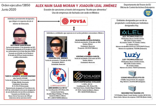 Washington.— Estados Unidos sancionó ayer a tres personas y empresas con sede en México a las que acusó de participar en una red para intentar evadir las sanciones a Venezuela impuestas por Washi