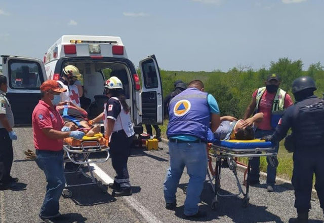 Volcadura en la carretera Soto La Marina, Tamaulipas, dejó como saldo tres lesionados y tres muertos, el accidente fue a consecuencia del exceso de velocidad que se desplazaba el conductor de una cam