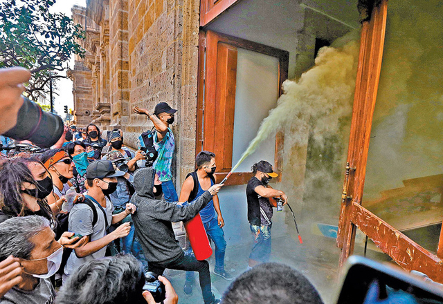 Manifestantes y policías heridos, (entre ellos uno a quien le prendieron fuego), al menos 26 personas detenidas, dos patrullas quemadas y daños en la fachada y el interior de palacio de gobierno de