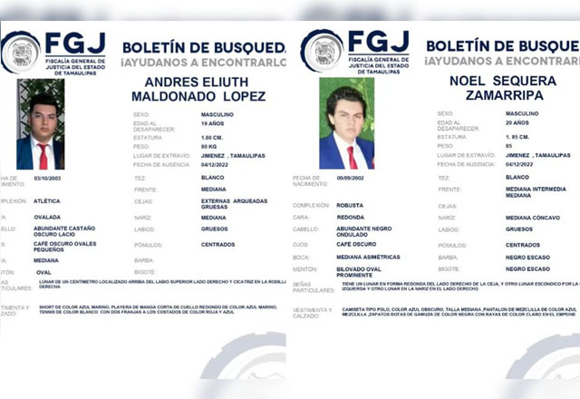 Dos jóvenes estudiantes oriundos de Ciudad Victoria, Tamaulipas fueron reportados como desaparecidos; la Fiscalía y autoridades emiten boletín de búsqueda. La Comisión Estatal de Búsqueda de Per