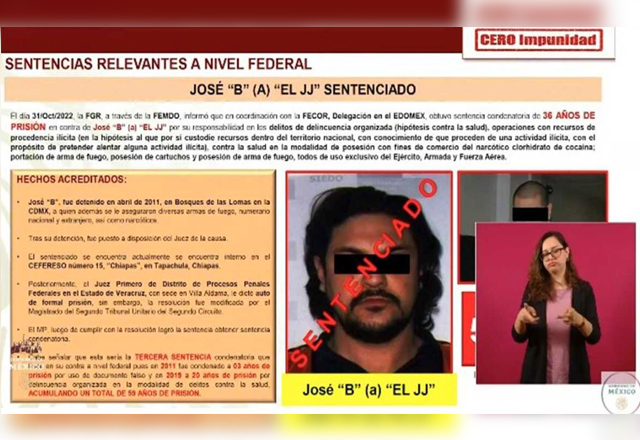 leer más“El JJ” acumula 59 años de prisión por diversos delitos, destaca SSPC
