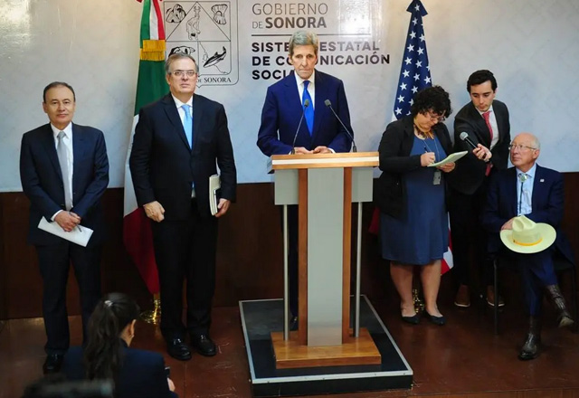 El presidente Andrés Manuel López Obrador recibió en Hermosillo, Sonora, al enviado especial presidencial para el clima de Estados Unidos, John Kerry, a quien se le notificó que Petróleos Mexican