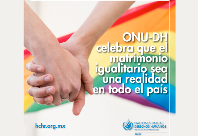 La Oficina en México del Alto Comisionado de las Naciones Unidas para los Derechos Humanos (ONU-DH) celebró este viernes que el matrimonio entre personas del mismo sexo ya sea legal en los 32 estado