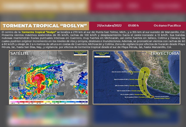 «Roslyn» amenaza con fortalecerse a huracán este viernes, mientras se acerca a México