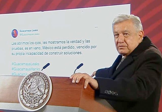 El presidente Andrés Manuel López presentó un supuesto mensaje de Twitter de los piratas cibernéticos Guacamaya y acusó que detrás de esos mensajes están sus opositores. En su conferencia de pr