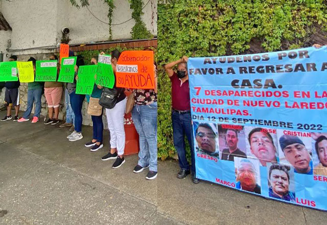 Con un plantón frente a la Casa de Gobierno de Tamaulipas, familiares de siete desaparecidos en Nuevo Laredo se manifestaron exigiendo respuesta a las autoridades. Con pancartas con leyendas como: No
