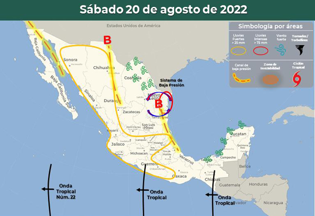 Ciudad Victoria, Tamaulipas.- El Servicio Meteorológico Nacional advirtió que el sábado caerán de 7.5 a 15 centímetros de agua en el centro y sur de Tamaulipas. Lo anterior se deberá al impacto